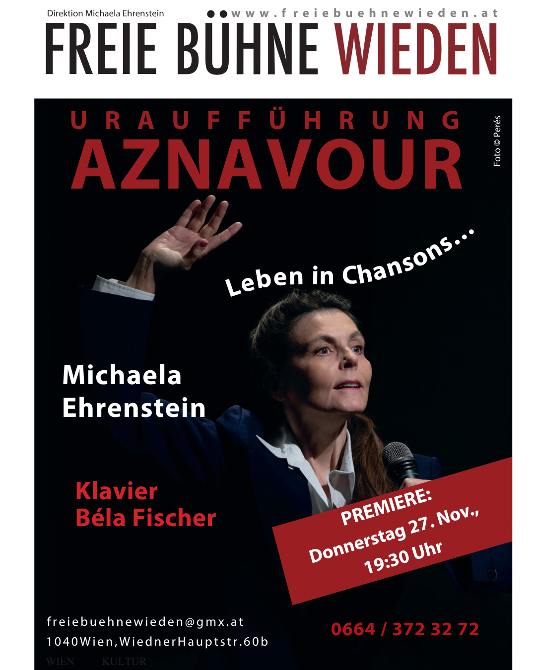 Nach umjubelten Vorstellungen über das Leben der großen Juliette Gréco widmet sich Michaela Ehrenstein in ihrem neuen Abend nun einer weiteren Ikone des französischen Chansons: Monsieur Charles Aznavour